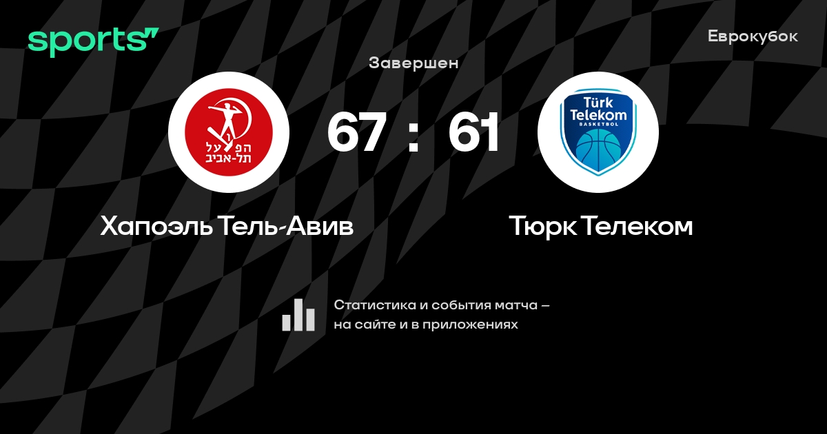В прошедшем матче в рамках турнира Еврокубок (Четвертьфинал) состоялась встреча команд Хапоэль Тель-Авив - Тюрк Телеком в городе на стадионе Arena Samokov