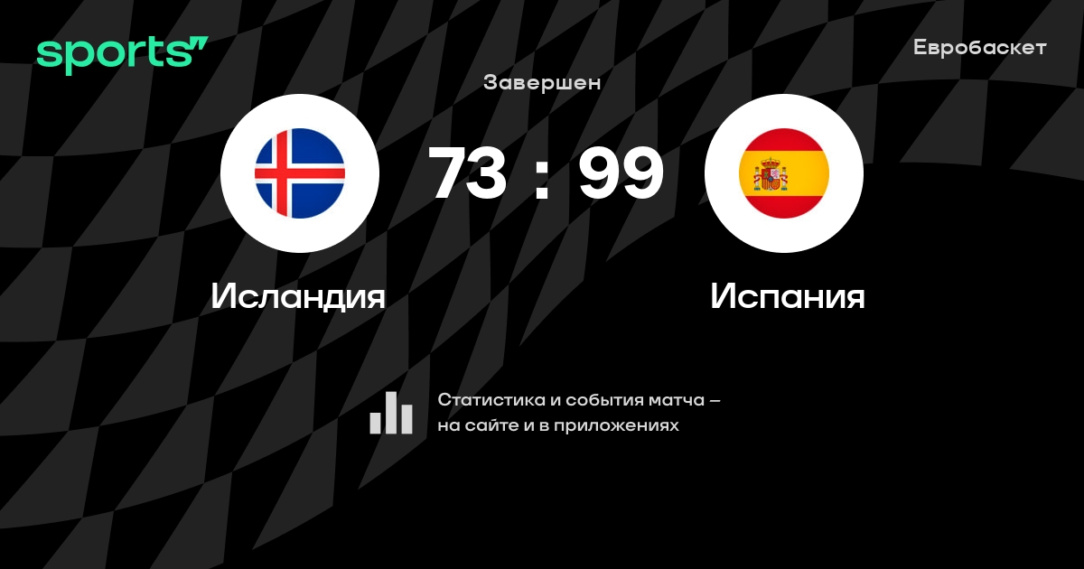 В прошедшем матче в рамках турнира Евробаскет (Групповой этап. 4 тур) состоялась встреча команд Исландия - Испания в городе Берлин (Германия) на стадионе Убер Арена (вместимость - 16000)