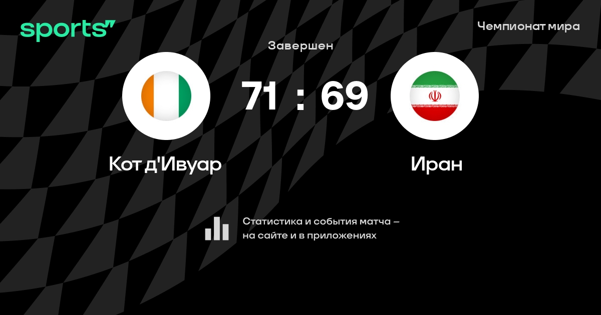 В прошедшем матче в рамках турнира Чемпионат мира (1-й групповой этап) состоялась встреча команд Кот д'Ивуар - Иран в городе на стадионе Indonesia Arena