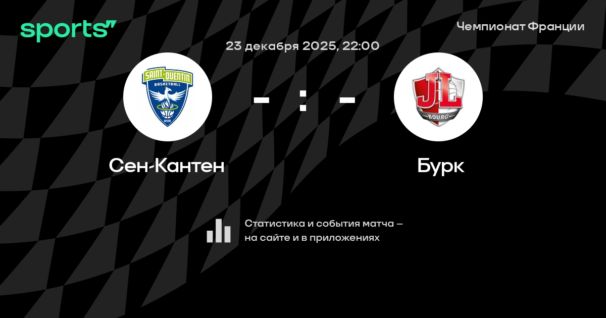 В предстоящем матче в рамках турнира Чемпионат Франции пройдет встреча команд Сен-Кантен - Бурк в городе на стадионе Palais des Sports Pierre-Rate.