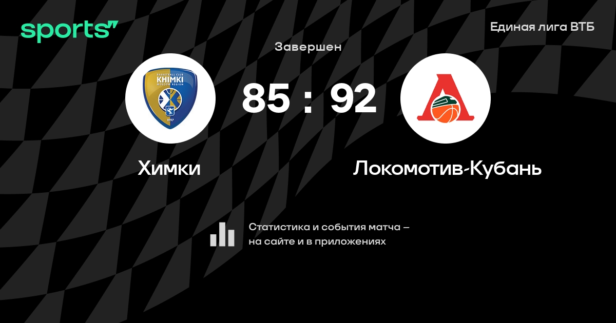 В прошедшем матче в рамках турнира Единая лига ВТБ (Четвертьфинал) состоялась встреча команд Химки - Локомотив-Кубань в городе Химки (Россия) на стадионе Баскетбольный центр Химки (вместимость - 3500)