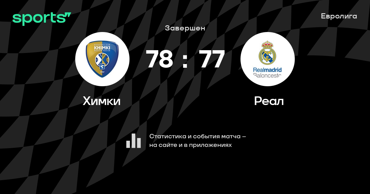 В прошедшем матче в рамках турнира Евролига состоялась встреча команд Химки - Реал в городе Москва (Россия) на стадионе Арена Мытищи (вместимость - 8000)