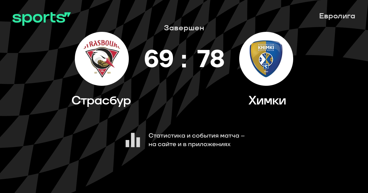 В прошедшем матче в рамках турнира Евролига (Группа A) состоялась встреча команд Страсбур - Химки в городе Страсбург (Франция) на стадионе Реню Спорт (вместимость - 6200)