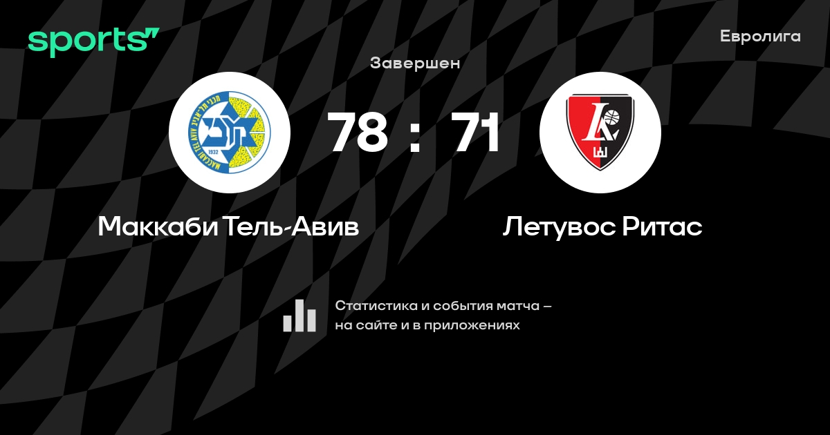 В прошедшем матче в рамках турнира Евролига (Группа D) состоялась встреча команд Маккаби Тель-Авив - Летувос Ритас в городе Тель-Авив (Израиль) на стадионе Менора-Мивтахим Арена (вместимость - 11700)