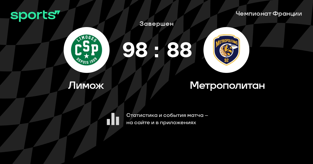 В прошедшем матче в рамках турнира Чемпионат Франции состоялась встреча команд Лимож - Метрополитан в городе на стадионе Palais des sports de Beaublanc
