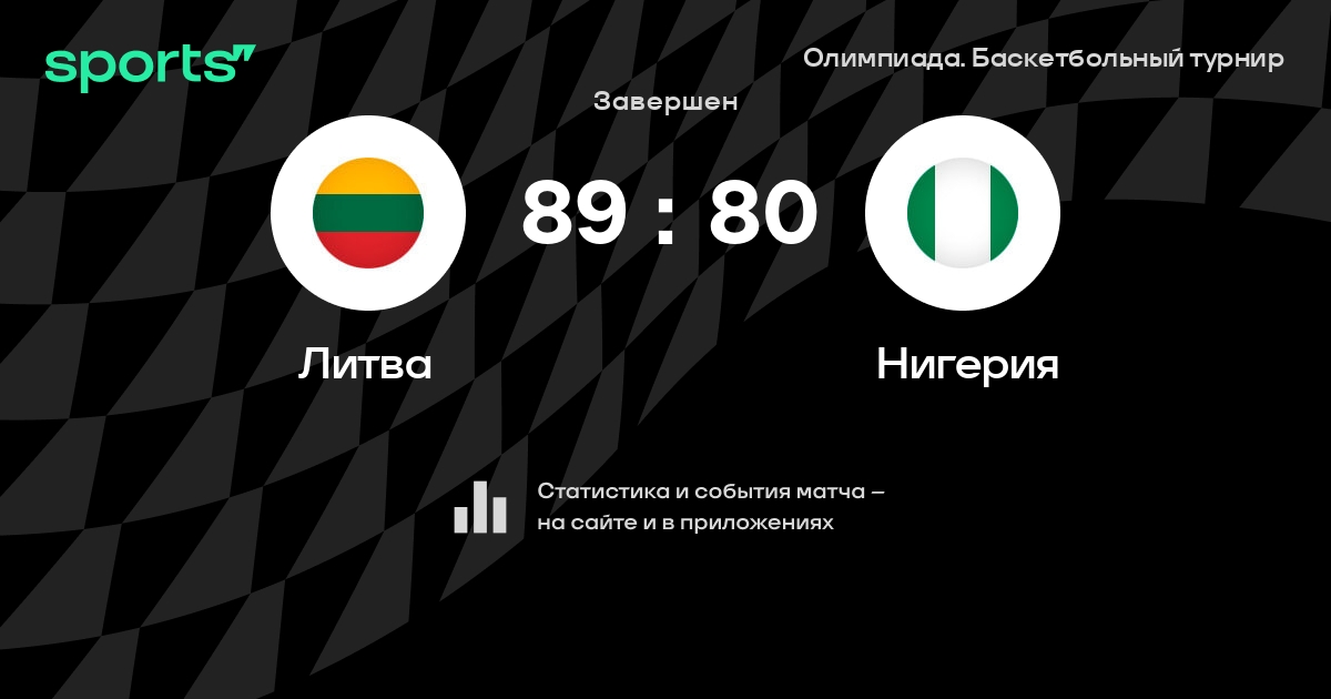 В прошедшем матче в рамках турнира Олимпиада. Баскетбольный турнир состоялась встреча команд Литва - Нигерия в городе Rio de Janeiro на стадионе Carioca Arena 1