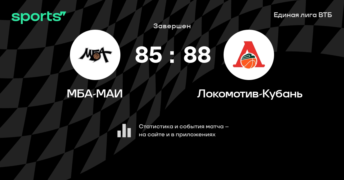 В прошедшем матче в рамках турнира Единая лига ВТБ состоялась встреча команд МБА-МАИ - Локомотив-Кубань в городе Москва (Россия) на стадионе Баскет Холл Москва (вместимость - 5000)