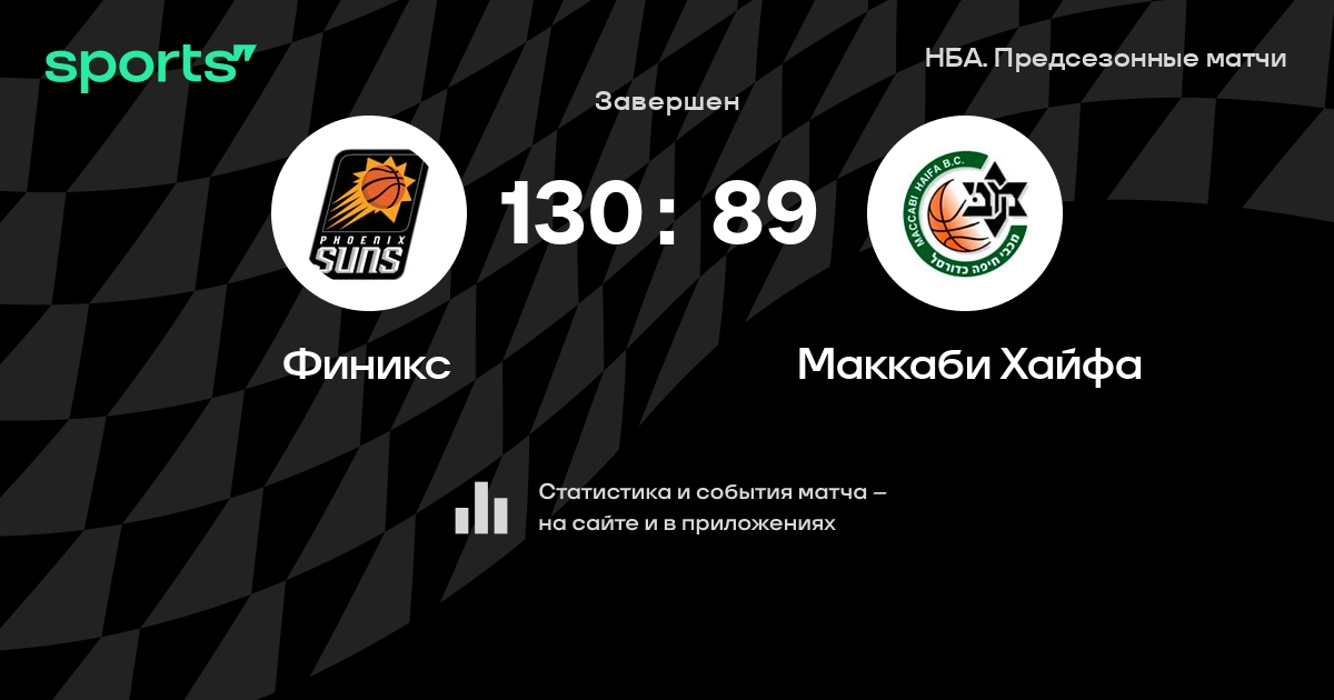 В прошедшем матче в рамках турнира НБА. Предсезонные матчи состоялась встреча команд Финикс - Маккаби Хайфа в городе Финикс (США) на стадионе Footprint Center (вместимость - 18422)