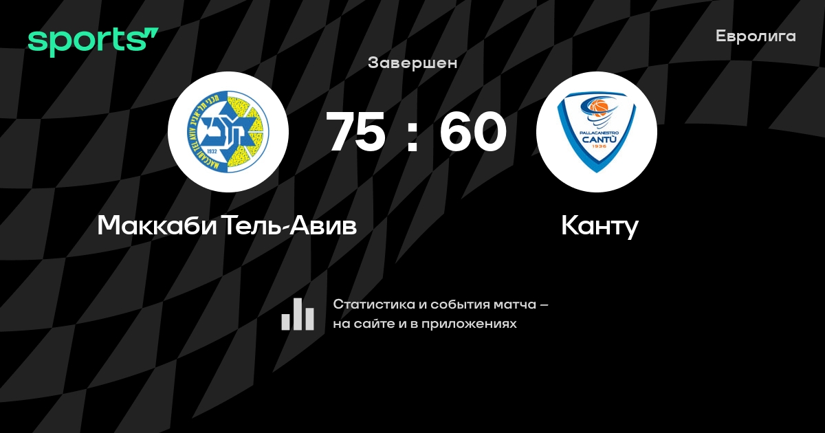 В прошедшем матче в рамках турнира Евролига (Топ 16) состоялась встреча команд Маккаби Тель-Авив - Канту в городе Тель-Авив (Израиль) на стадионе Менора-Мивтахим Арена (вместимость - 11700)