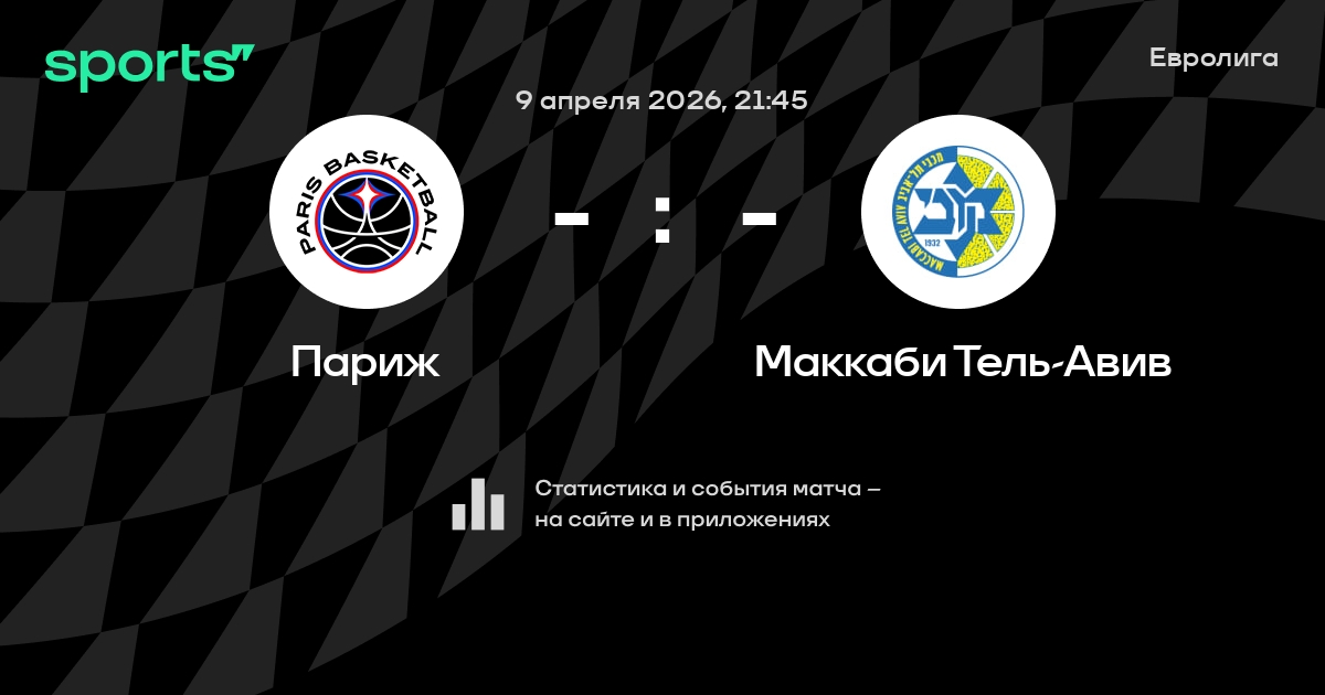 В предстоящем матче в рамках турнира Евролига пройдет встреча команд Париж - Маккаби Тель-Авив в городе Париж (Франция) на стадионе Адидас Арена (вместимость - 8000).
