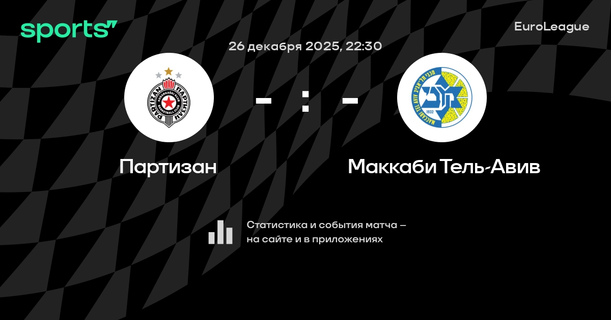 В предстоящем матче в рамках турнира EuroLeague пройдет встреча команд Партизан - Маккаби Тель-Авив .