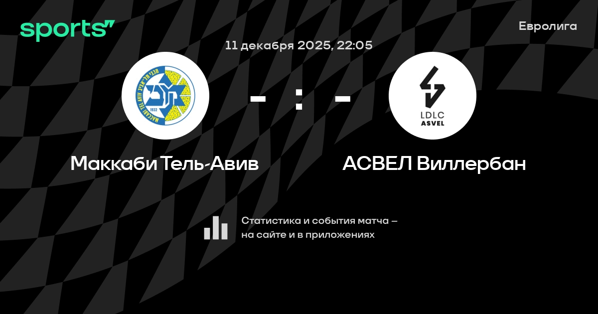 В предстоящем матче в рамках турнира Евролига пройдет встреча команд Маккаби Тель-Авив - АСВЕЛ Виллербан .