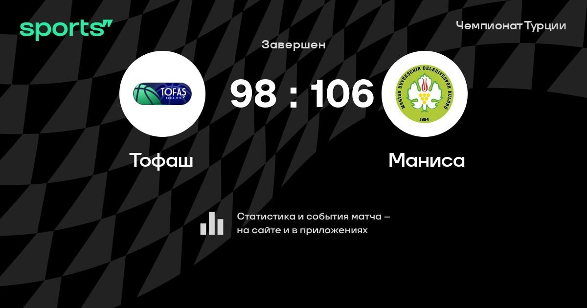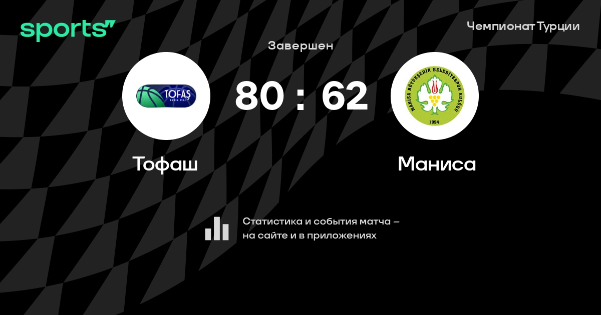 В прошедшем матче в рамках турнира Чемпионат Турции состоялась встреча команд Тофаш - Маниса в городе на стадионе Tofaş Spor Salonu