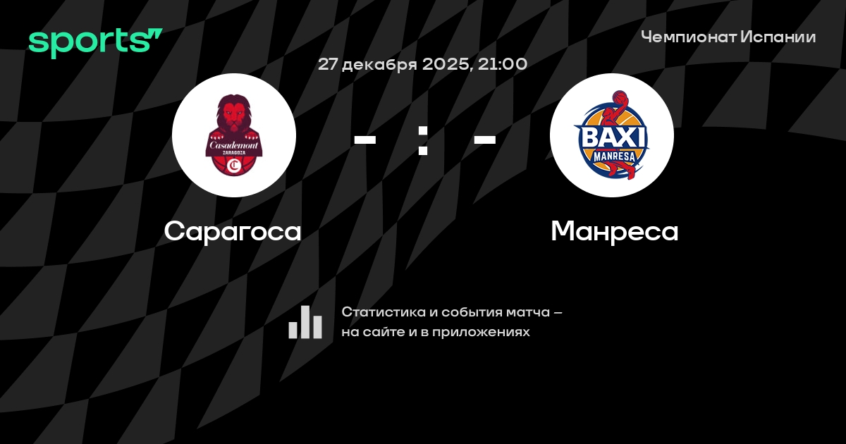 В предстоящем матче в рамках турнира Чемпионат Испании пройдет встреча команд Сарагоса - Манреса .