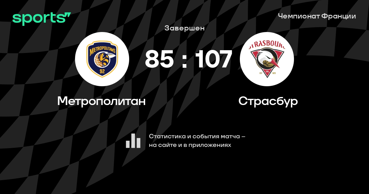 В прошедшем матче в рамках турнира Чемпионат Франции состоялась встреча команд Метрополитан - Страсбур в городе на стадионе Palais des Sports Marcel Cerdan