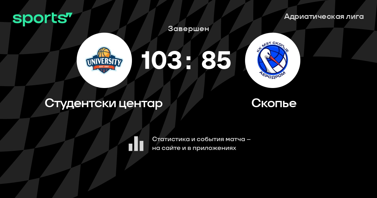 В прошедшем матче в рамках турнира Адриатическая лига состоялась встреча команд Студентски центар - Скопье в городе Подгорица (Черногория) на стадионе Морача (вместимость - 6000)