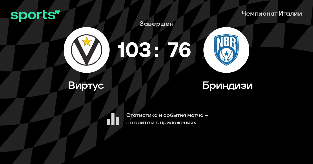 В прошедшем матче в рамках турнира Чемпионат Италии состоялась встреча команд Виртус - Бриндизи в городе Болонья (Италия) на стадионе Виртус Арена (вместимость - 9980)