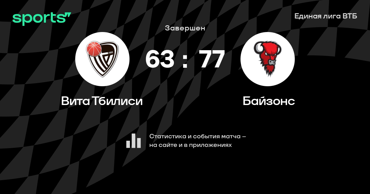 В прошедшем матче в рамках турнира Единая лига ВТБ состоялась встреча команд Вита Тбилиси - Байзонс в городе Тбилиси (Грузия) на стадионе Дворец спорта (вместимость - 9700)