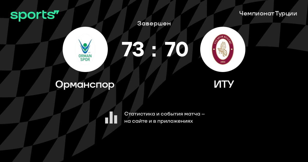 В прошедшем матче в рамках турнира Чемпионат Турции состоялась встреча команд Орманспор - ИТУ в городе Ankara на стадионе Ankara Arena