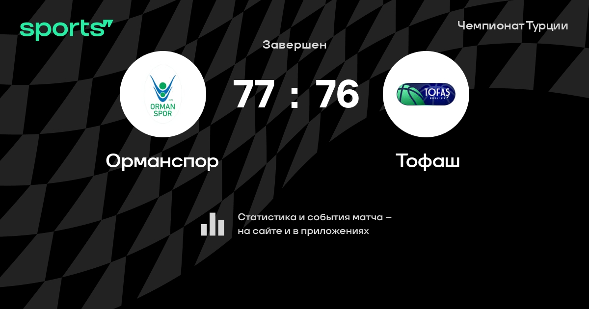 В прошедшем матче в рамках турнира Чемпионат Турции состоялась встреча команд Орманспор - Тофаш в городе на стадионе Mamak Belediyesi Hidayet Türkoğlu Spor Salonu