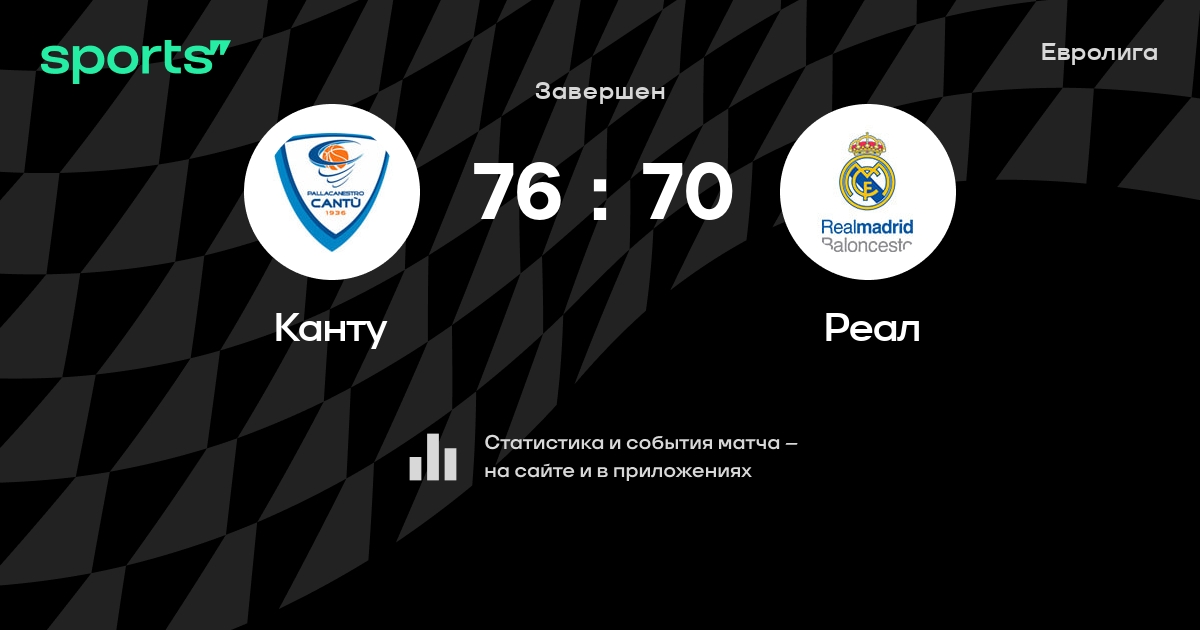 В прошедшем матче в рамках турнира Евролига (Группа A) состоялась встреча команд Канту - Реал в городе Дезио (Италия) на стадионе ПалаДезио (вместимость - 8000)