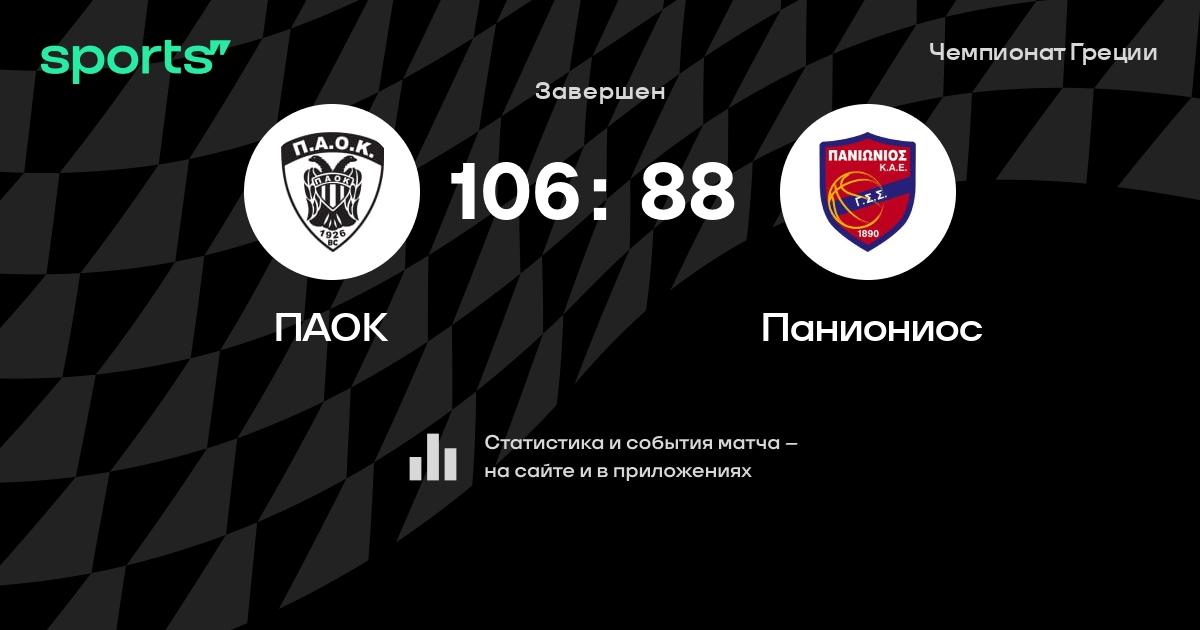 В прошедшем матче в рамках турнира Чемпионат Греции состоялась встреча команд ПАОК - Паниониос в городе на стадионе Kleisto Gipedo PAOK