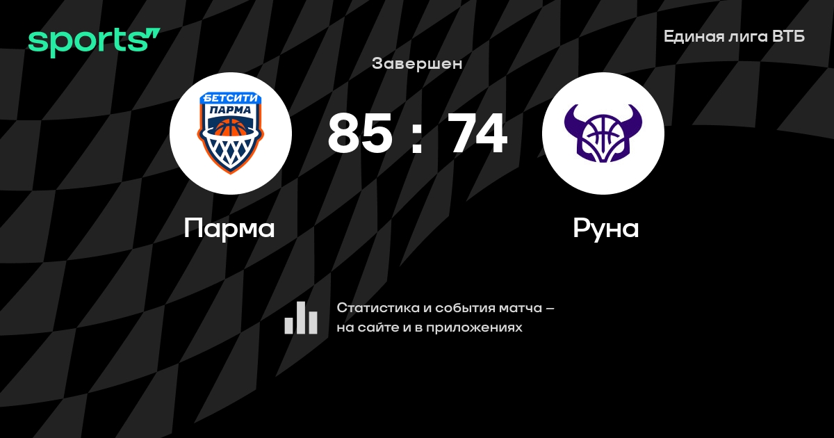 В прошедшем матче в рамках турнира Единая лига ВТБ состоялась встреча команд Парма - Руна в городе Пермь (Россия) на стадионе УДС Молот (вместимость - 7000)