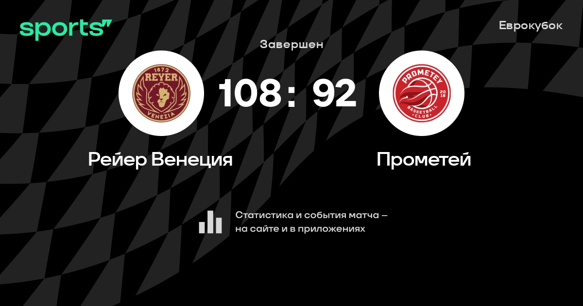 В прошедшем матче в рамках турнира Еврокубок состоялась встреча команд Рейер Венеция - Прометей в городе на стадионе Palasport Taliercio