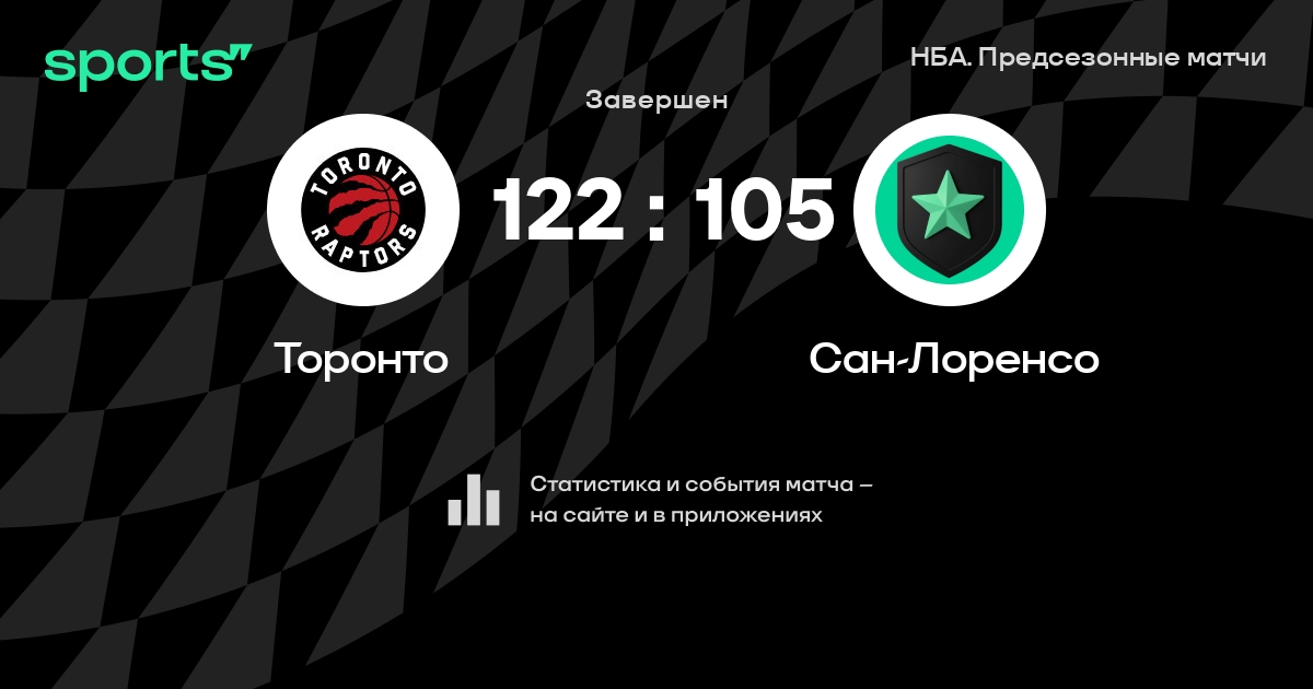 В прошедшем матче в рамках турнира НБА. Предсезонные матчи состоялась встреча команд Торонто - Сан-Лоренсо в городе Торонто (Канада) на стадионе Scotiabank Arena (вместимость - 18819)