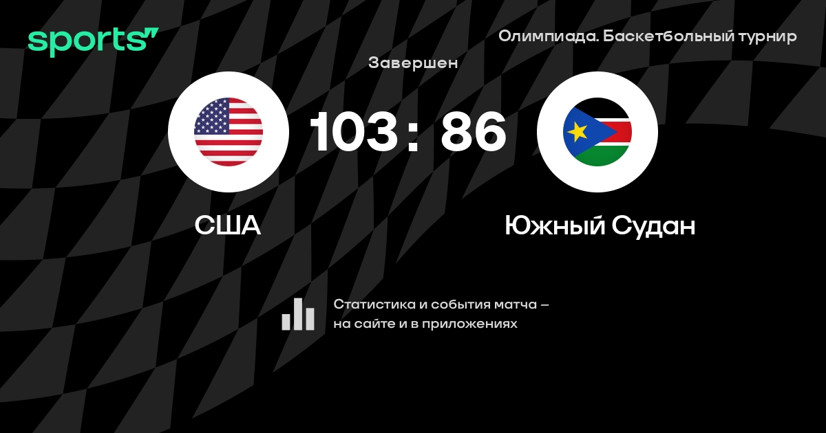 В прошедшем матче в рамках турнира Олимпиада. Баскетбольный турнир состоялась встреча команд США - Южный Судан в городе на стадионе Stade Pierre-Mauroy