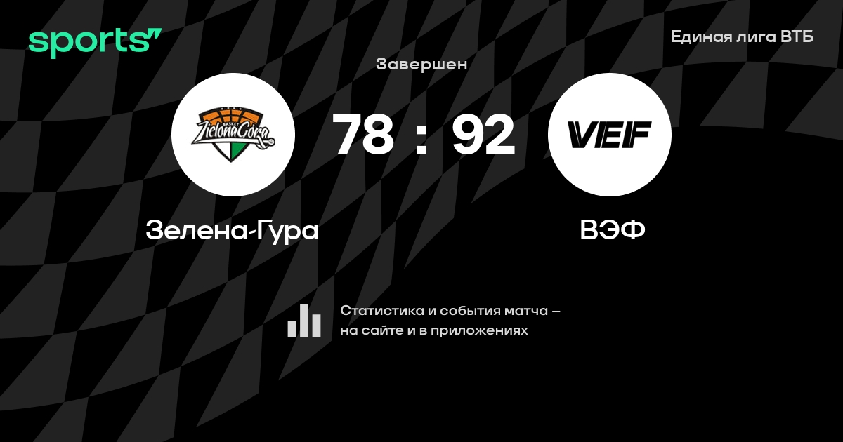 В прошедшем матче в рамках турнира Единая лига ВТБ состоялась встреча команд Зелена-Гура - ВЭФ в городе Зелена-Гура (Польша) на стадионе Рекреационно-спортивный центр (вместимость - 6080)
