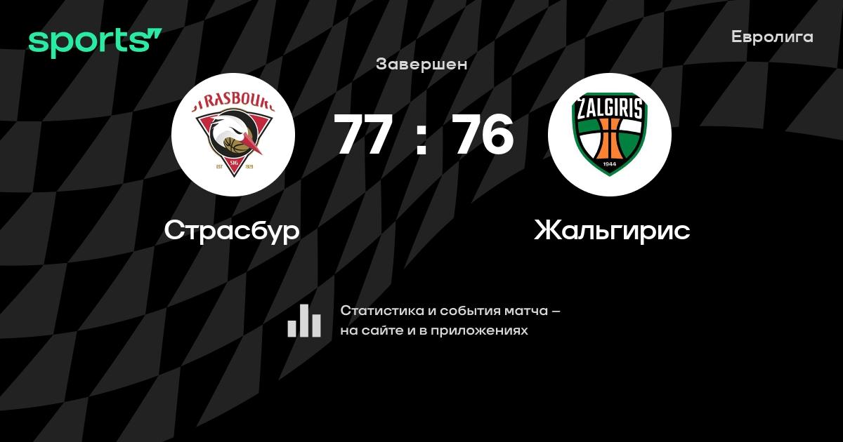 В прошедшем матче в рамках турнира Евролига (Группа B) состоялась встреча команд Страсбур - Жальгирис в городе Страсбург (Франция) на стадионе Реню Спорт (вместимость - 6200)