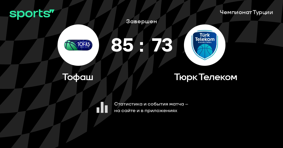 В прошедшем матче в рамках турнира Чемпионат Турции состоялась встреча команд Тофаш - Тюрк Телеком в городе на стадионе Tofaş Spor Salonu