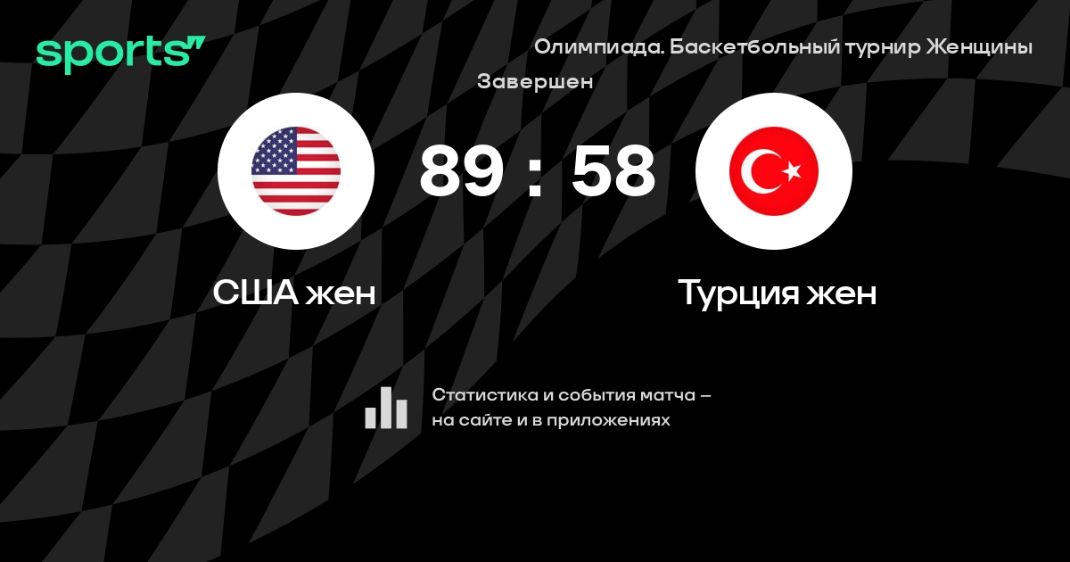 В прошедшем матче в рамках турнира Олимпиада. Баскетбольный турнир Женщины (Группа A) состоялась встреча команд США жен - Турция жен в городе Лондон (Англия) на стадионе Баскетбольная Олимпийская Арена (вместимость - 12000)