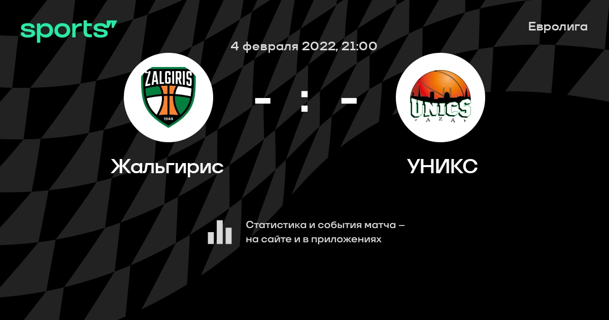 В предстоящем матче в рамках турнира Евролига пройдет встреча команд Жальгирис - УНИКС в городе Каунас (Литва) на стадионе Жальгирис Арена.