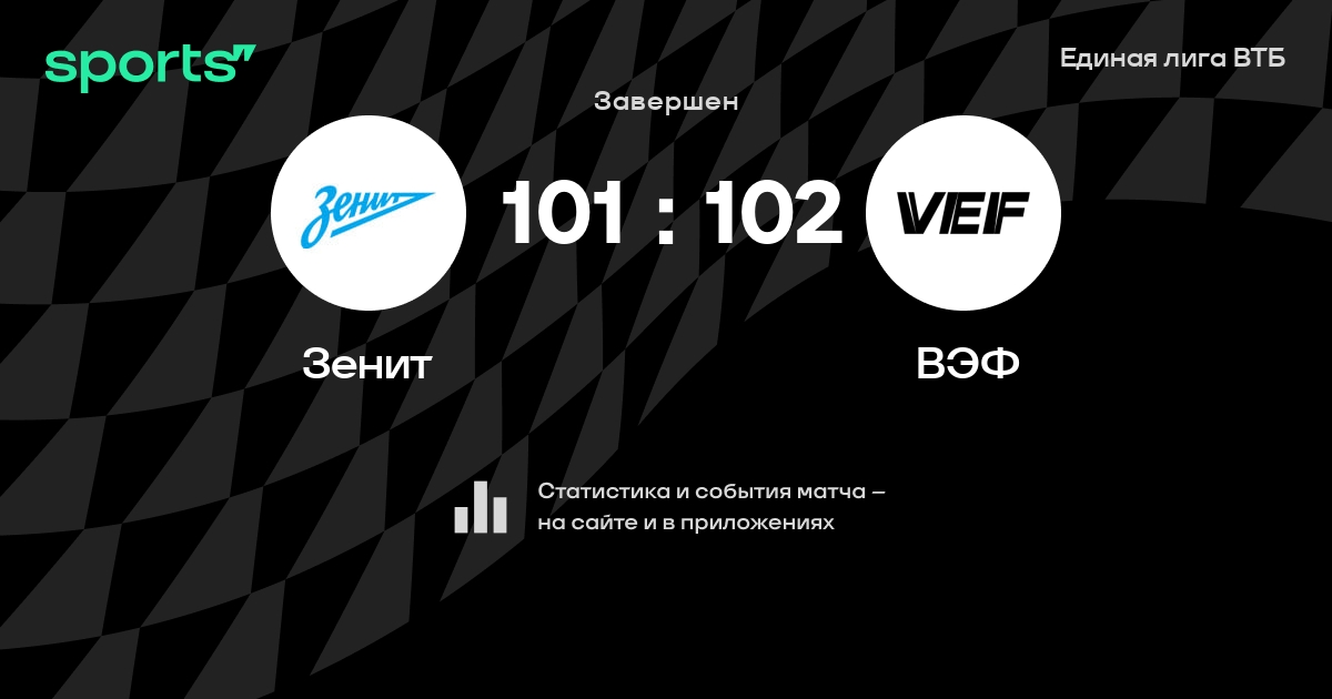 В прошедшем матче в рамках турнира Единая лига ВТБ состоялась встреча команд Зенит - ВЭФ в городе Санкт-Петербург (Россия) на стадионе КСК Арена (вместимость - 7120)