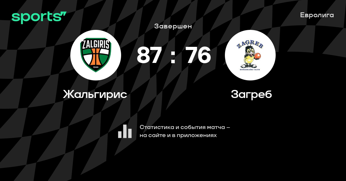 В прошедшем матче в рамках турнира Евролига (Группа B) состоялась встреча команд Жальгирис - Загреб в городе Каунас (Литва) на стадионе Каунас Спорт Холл (вместимость - 5000)