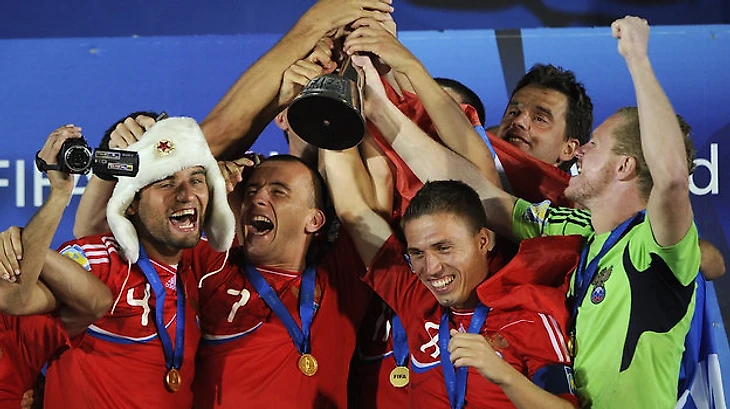 В 2011 году россияне выступили на чемпионате мира в Италии, где попали в довольно легкую группу C вместе с Таити, Нигерией и Венесуэлой. Все три матча были выиграны: 8:4 у Нигерии, 5:0 у Таити и 7:3 у Венесуэлы. В четвертьфинале была повержена Мексика (5:3), в полуфинале разгромлен Сальвадор (7:3), а в финале сборная России сотворила настоящую сенсацию, победив Бразилию со счетом 12:8. Причем бразильцы больше владели мячом и чаще били по воротам (25 ударов в створ против 19), но россияне продемонстрировали идеальную реализацию и дисциплину. Кстати, если считать и непризнанные ФИФА мундиали, в тот раз Бразилия шла за 14-м титулом чемпионов мира.