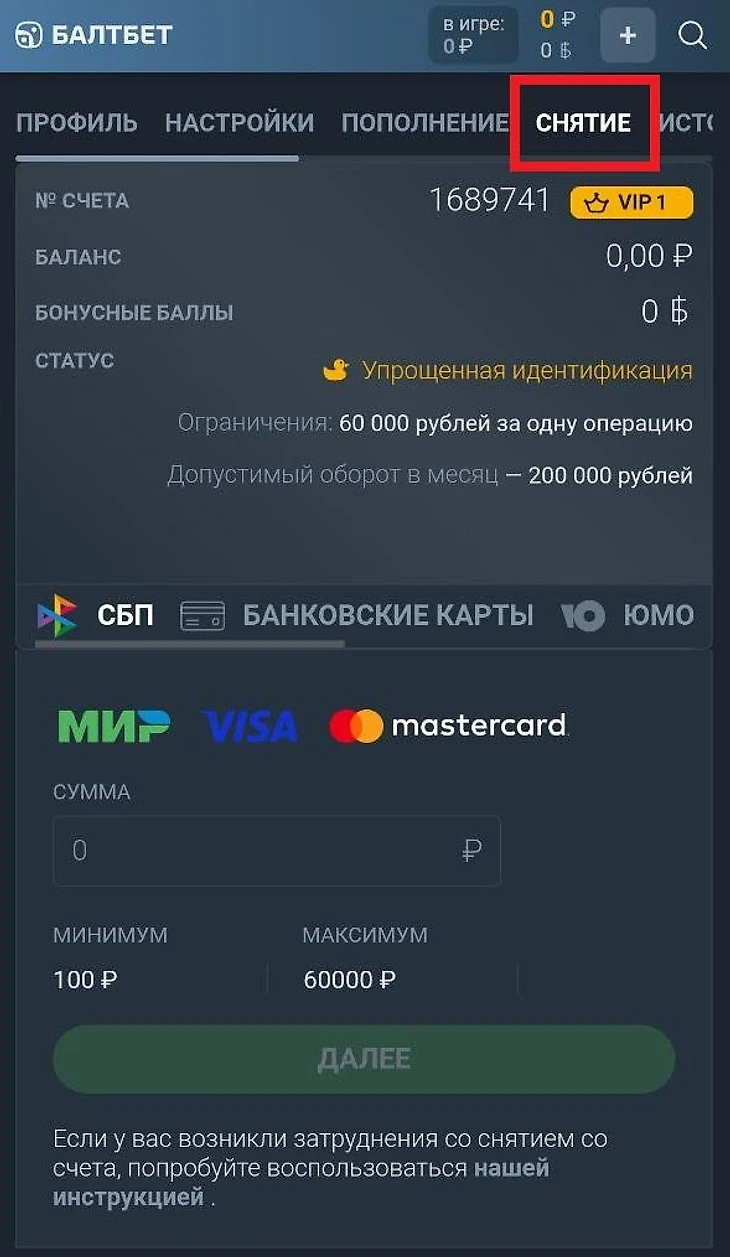 Инструкция по оформлению заявки на вывод средств в «Балтбет»:
