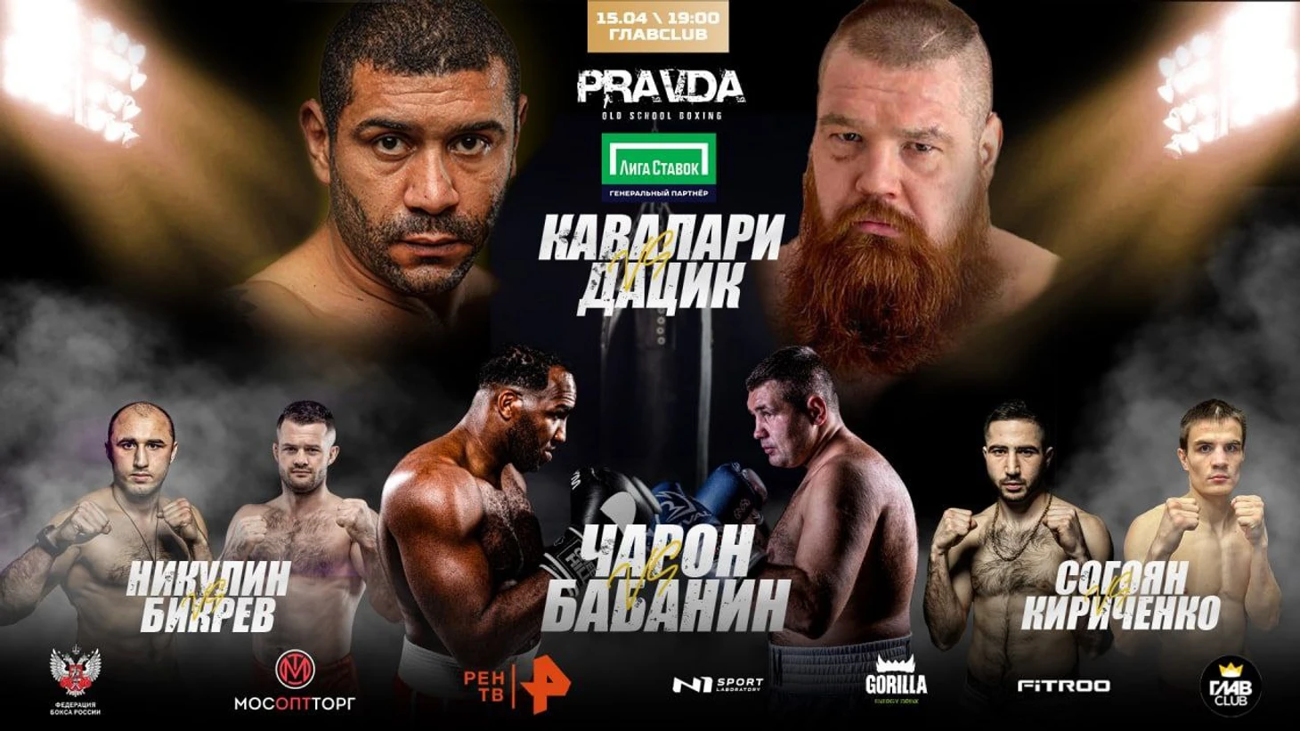 В пятницу, 15 апреля в 19:00, в Москве в ГЛАВCLUB пройдет турнир PRAVDA old school boxing. В главном бою вечера по правилам бокса встретятся известный российский боец единоборств Вячеслав Дацик и мастер смешанных единоборств, выступающий «на голых кулаках» Сауло Кавалари.