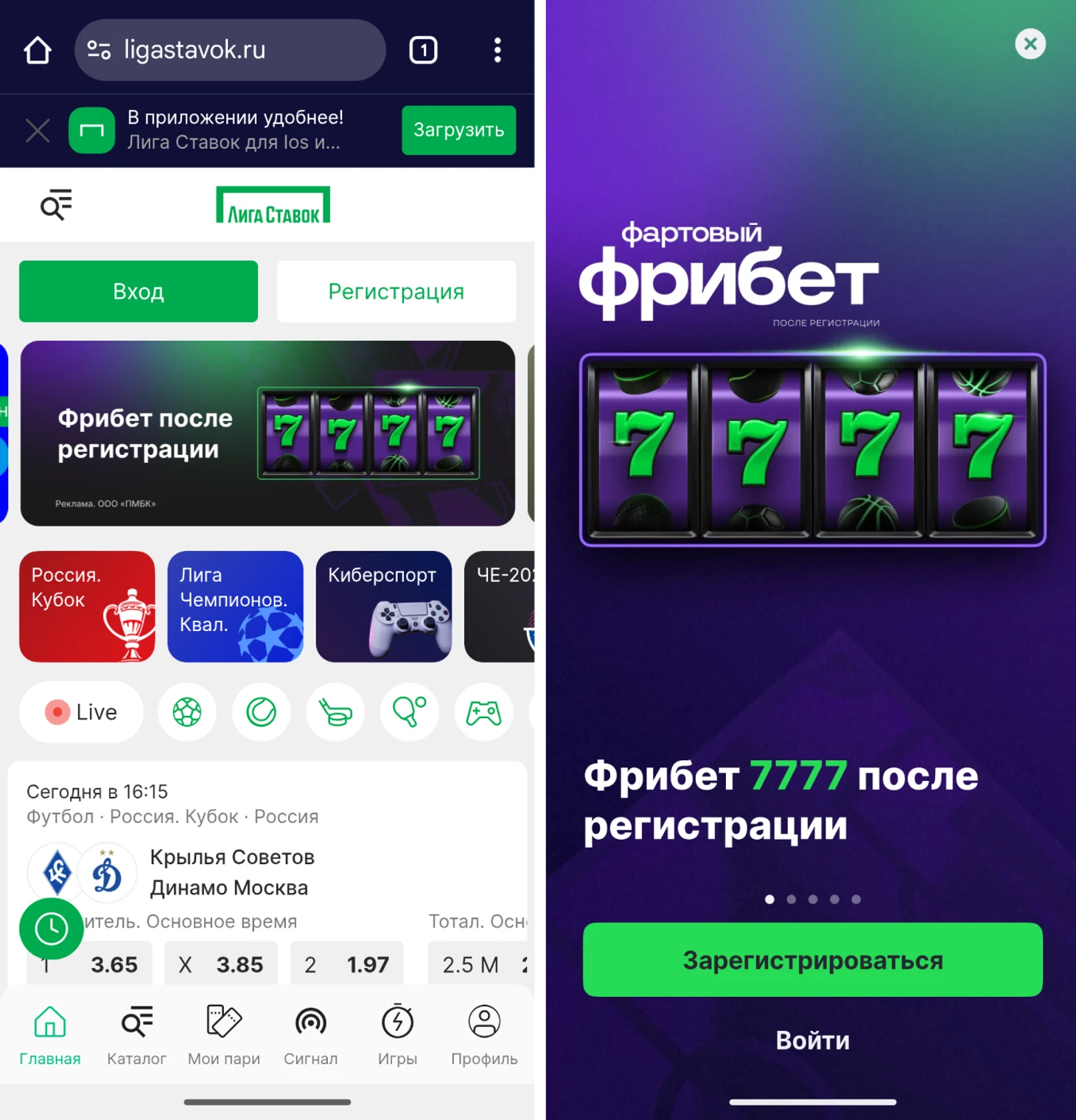 На указанный номер телефона придет смс с кодом для завершения регистрации. Если вы ранее уже проходили регистрацию в «Лиге Ставок», повторно делать этого не нужно. С одного аккаунта можно играть и в десктопной, и в мобильной версии, и в приложении на Андроид.