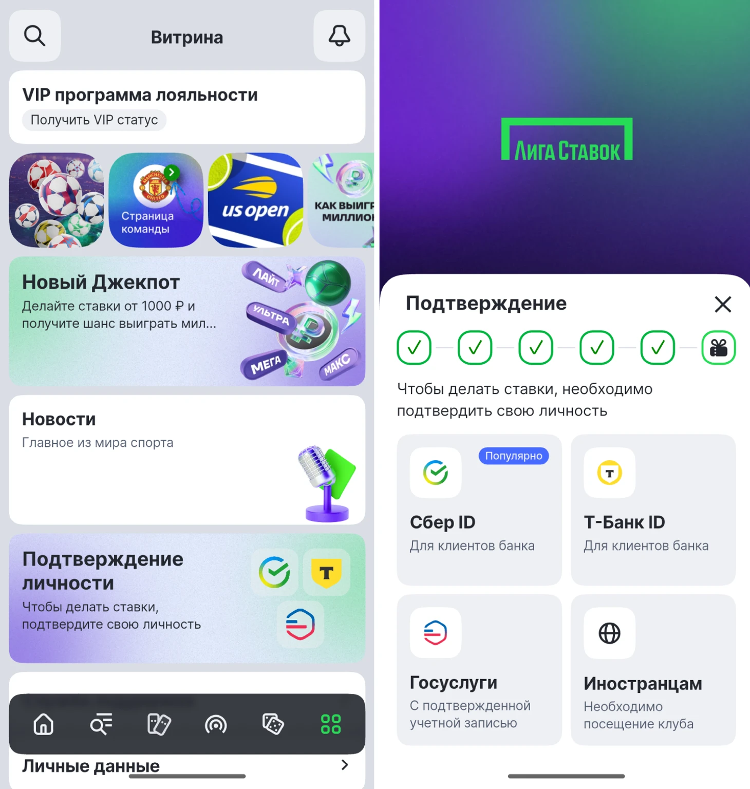 «Подтверждение личности». Необходимо пройти данную процедуру, чтобы получить возможность делать ставки. Нажав на раздел, вы увидите все доступные способы идентификации и инструкцию к ним.