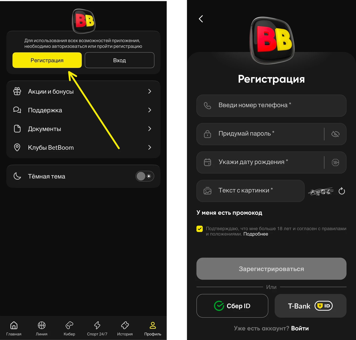 Регистрация в BetBoom