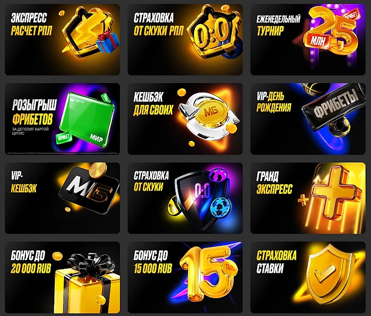 Каждую неделю проводится розыгрыш фрибетов среди клиентов, которые совершают ставки на сумму от 500 рублей. Размер бонуса зависит от количества набранных очков. Также есть дополнительные фрибеты за пополнение счета картой от ЦУПИС, ставки на матчи РПЛ и Первой лиги.