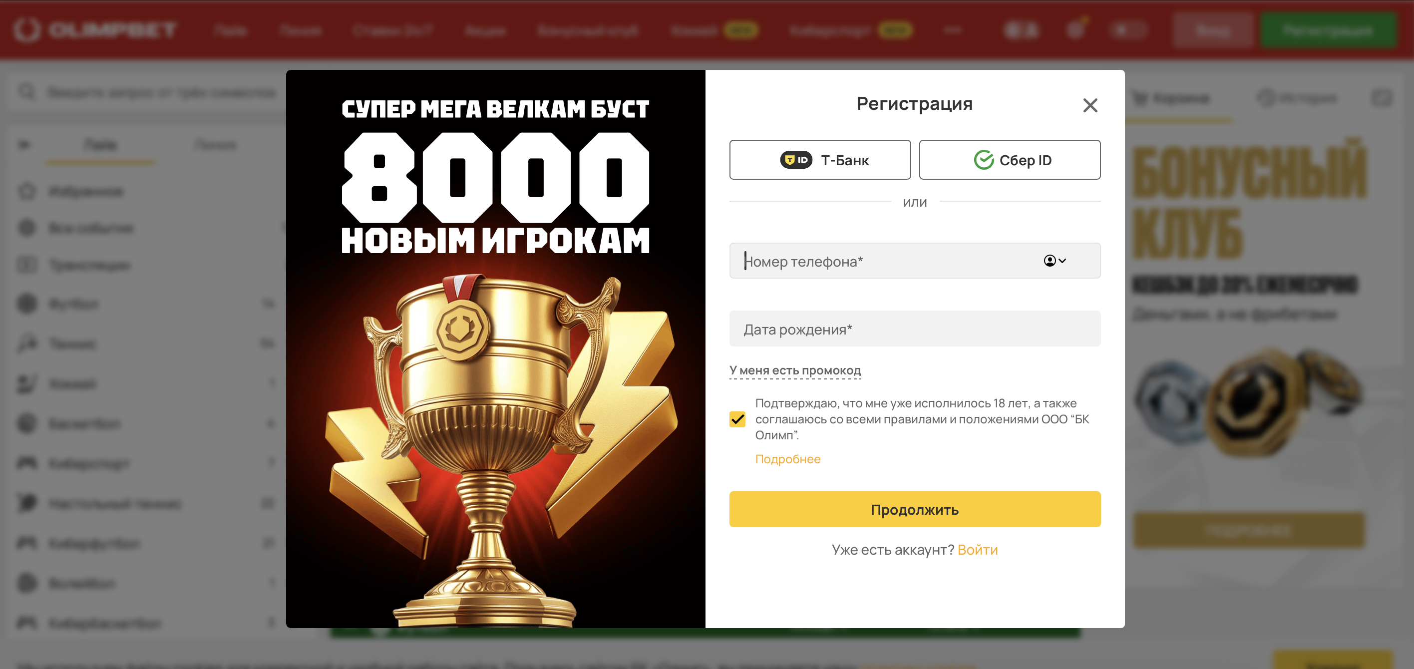 Полный процесс регистрации на сайте букмекера OLIMPBET включает несколько шагов, которые необходимо следовать для создания аккаунта и начала использования функционала букмекера.