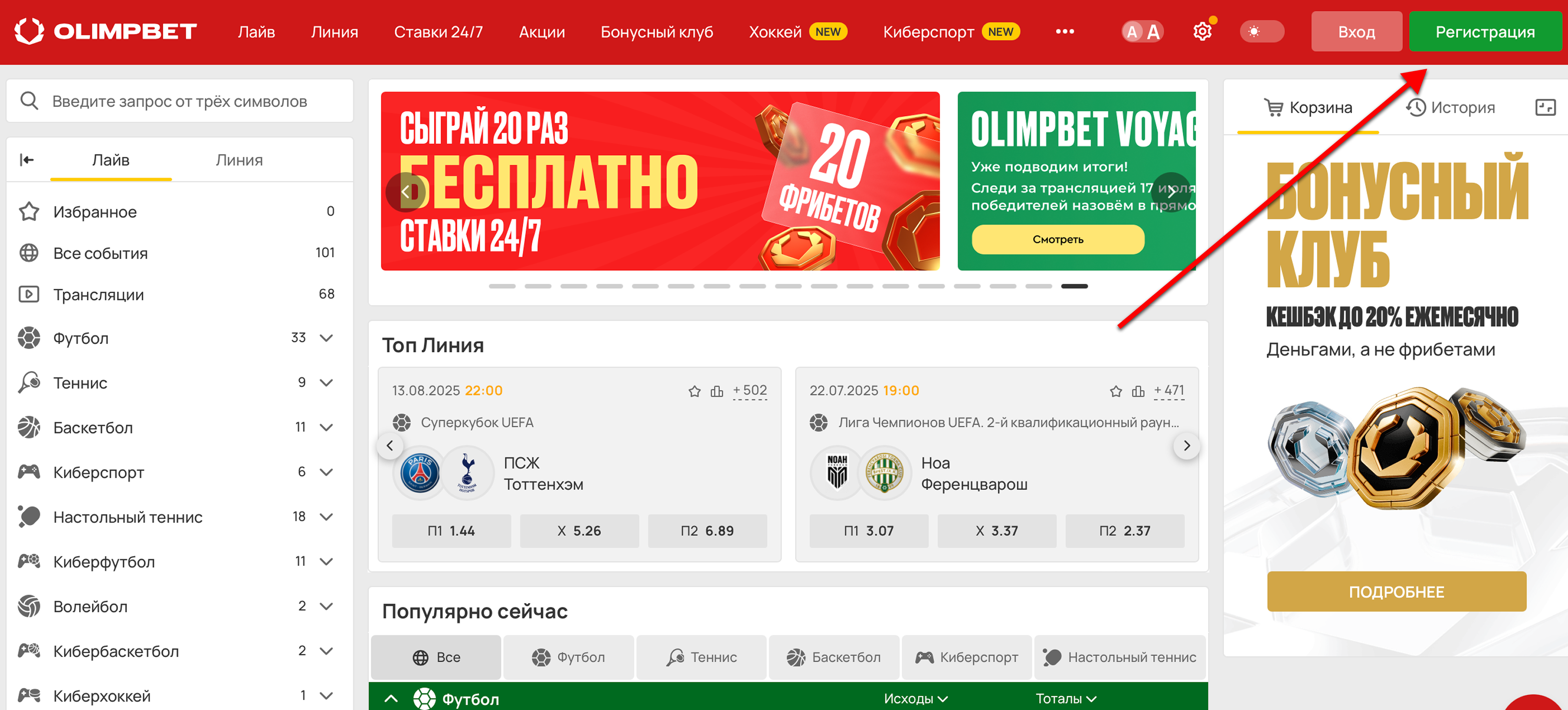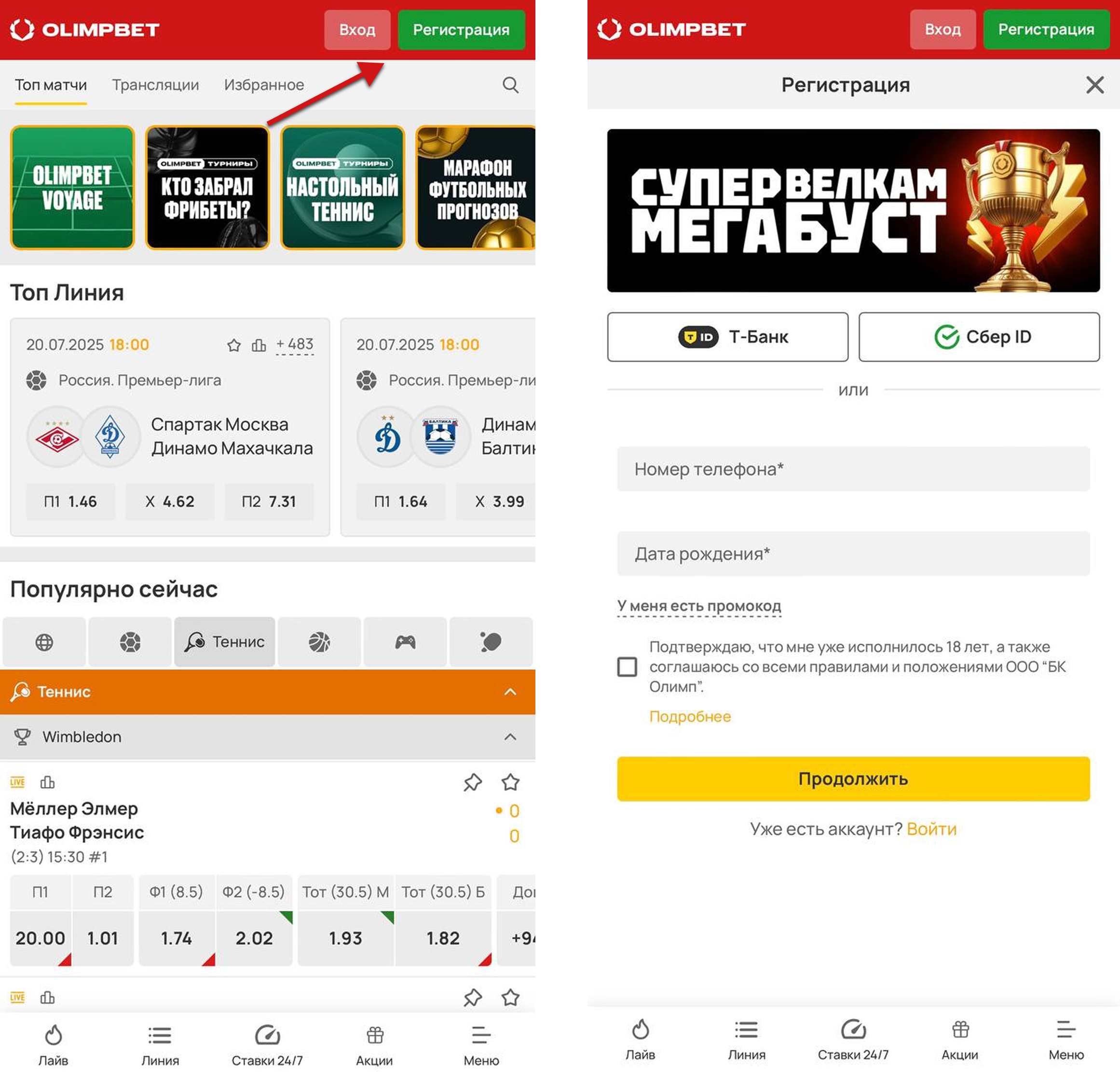 Кнопка «Регистрация» или «Войти»: Начните с клика на кнопку «Регистрация» или «Войти» на главной странице сайта OLIMPBET. Это позволит вам перейти к процедуре входа.