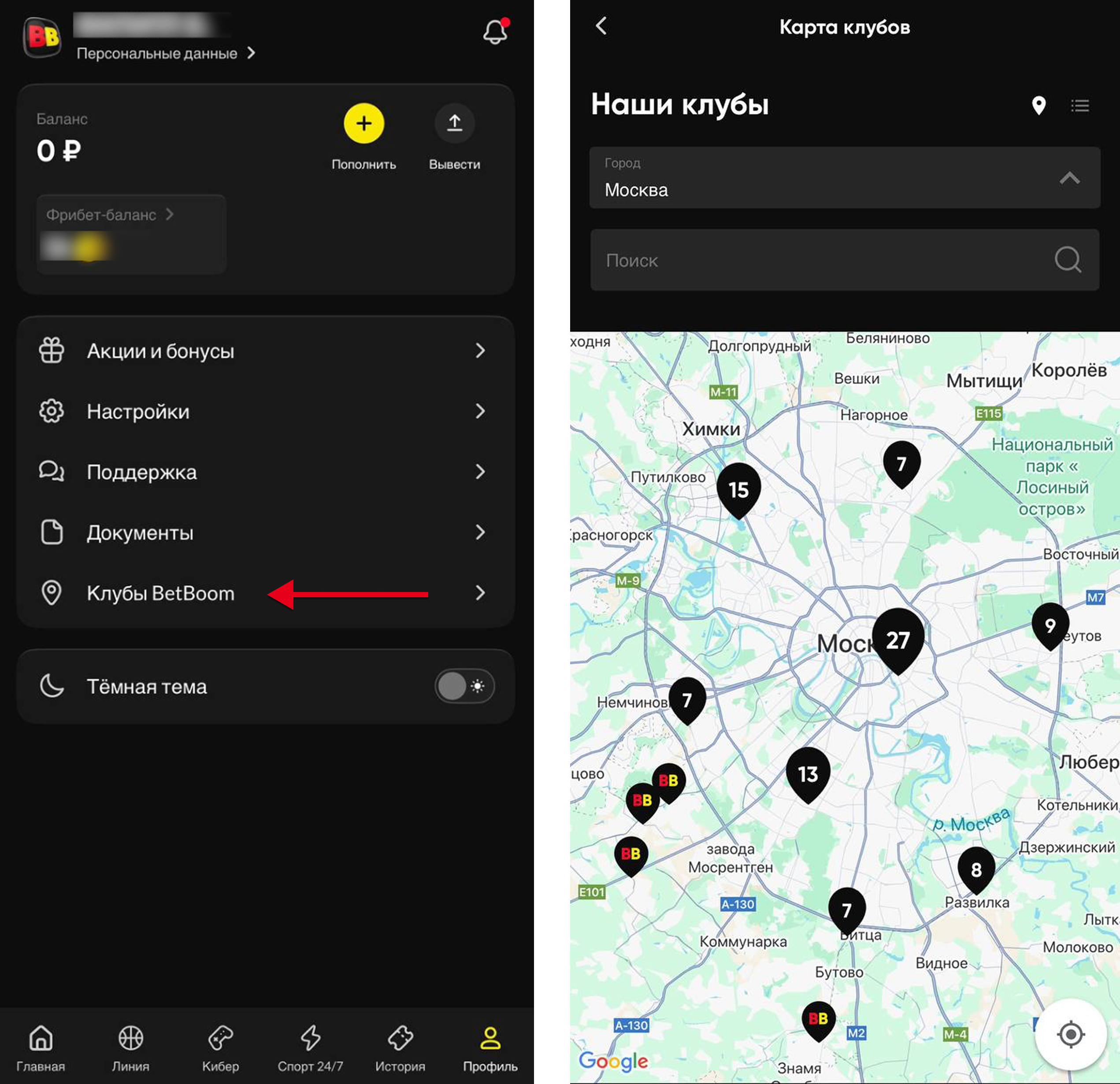 Адреса пунктов приема ставок «BetBoom» в Москве