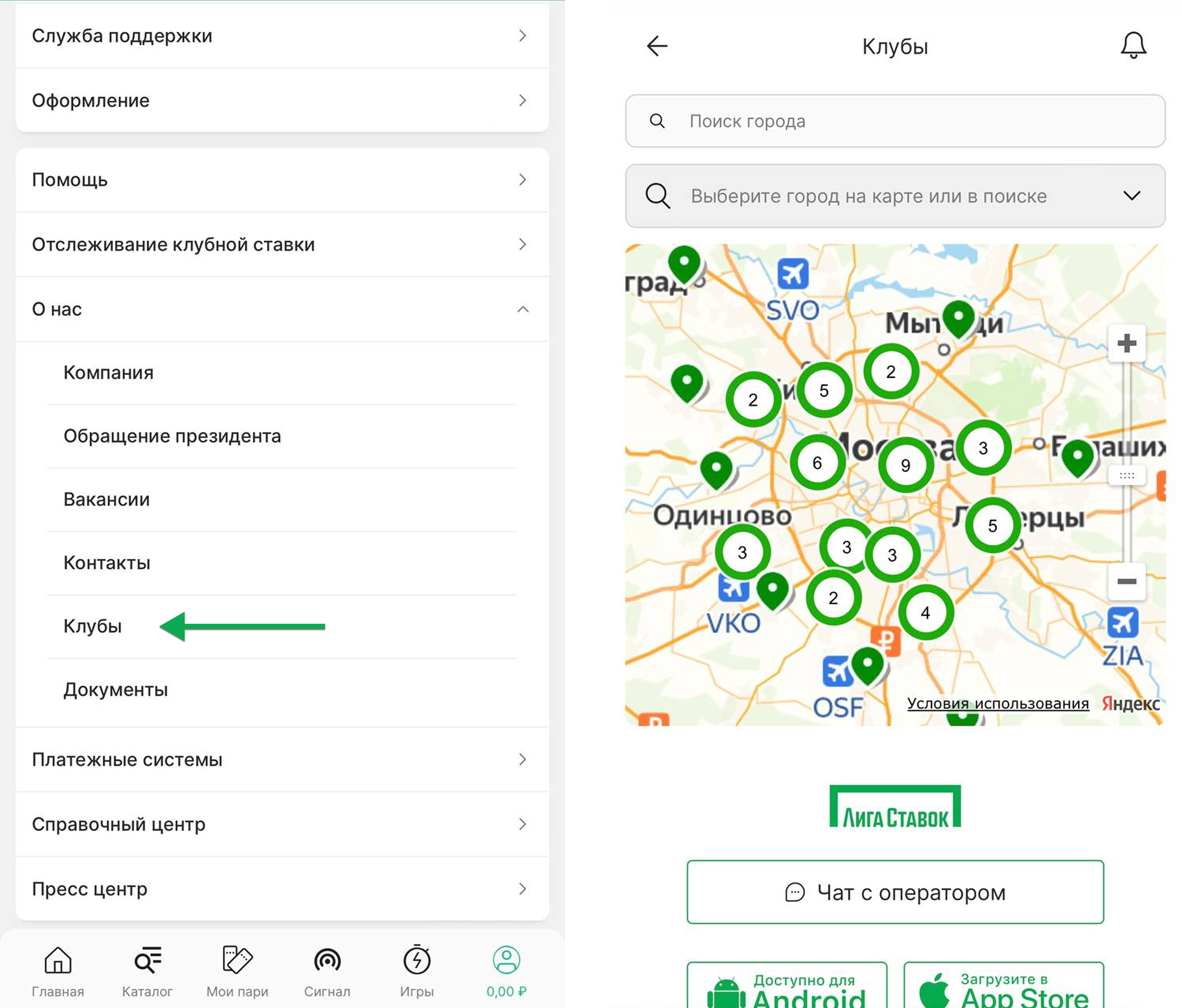 Сеть филиалов этой букмекерской компании охватывает различные города России, предоставляя игрокам удобные места для размещения ставок. В этом списке вы найдете адреса, телефоны и количество филиалов «Лига Ставок» в Москве. Также актуальный список и онлайн-карта доступны на сайте в приложении букмекера. Достаточно перейти во вкладки «О нас» → «Клубы».