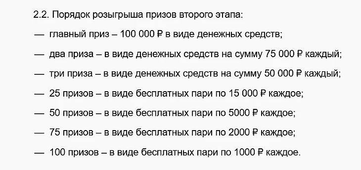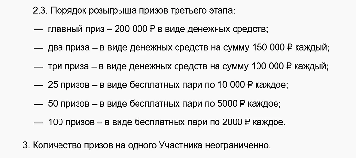 Благодаря трем этапам розыгрышей, у каждого участника есть несколько возможностей испытать удачу и получить приз. Даже если не повезло в первом розыгрыше, купоны продолжают участвовать в следующих.