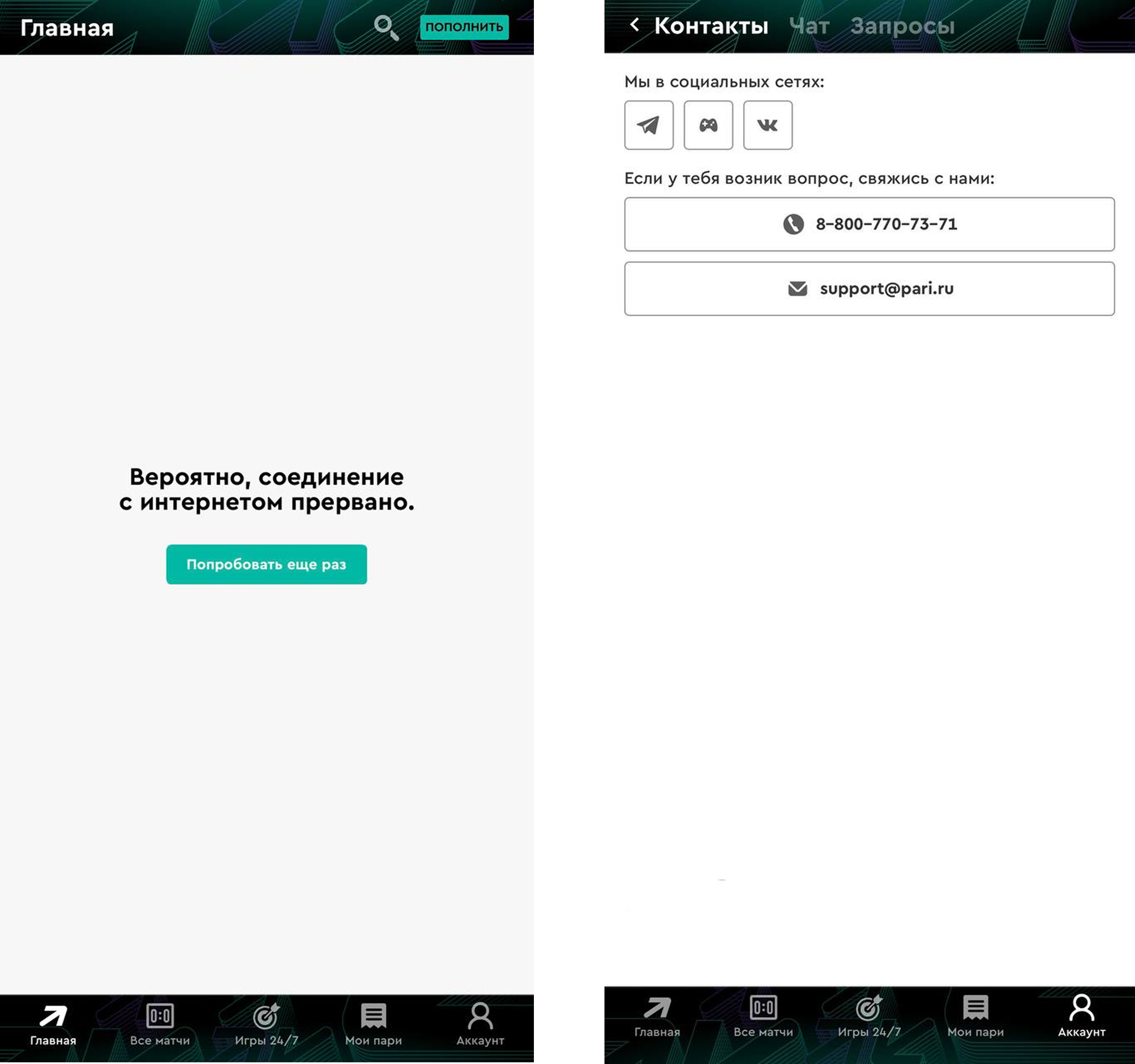 Если все интернет-ресурсы, кроме сайта «Пари», работают корректно, вероятно, проблема на стороне букмекера. В таких случаях рекомендуется связаться с технической поддержкой «Пари»: